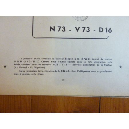 • N73 V73 D16 MF835 Tracteurs Revue Technique Agricole Massey Ferguson Renault