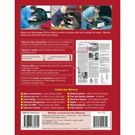 Golf Hatchback & Jetta Saloon (Mk 1). Petrol: 1.1 litre (1093cc) & 1.3 litre (1272cc).