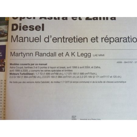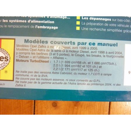 OPEL ASTRA Diesel de 04/1998 a 04/2004 et Zafira de 04/1999 a 2005